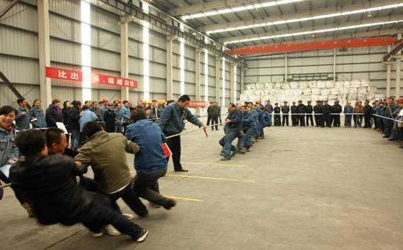 文體比賽共設(shè)拔河、籃球、羽毛球、乒乓球2項(xiàng)集體項(xiàng)目和4項(xiàng)個(gè)人項(xiàng)目,各參賽代表隊(duì)熱情十分高漲。這次活動(dòng)可以說是一次全公司員工以及參建單位的全民健身運(yùn)動(dòng),不僅激發(fā)了青海物產(chǎn)工業(yè)投資有限公司、長(zhǎng)春炭素有限公司全體員工和參建單位的同志參與意識(shí)、團(tuán)結(jié)意識(shí),更促進(jìn)了相互之間的了解,增進(jìn)了友誼。21日開幕式結(jié)束之后,立即開始了拔河比賽的第一輪淘汰賽。拔河比賽共有十六個(gè)參賽隊(duì)伍。