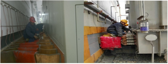 今年,對動力供電系統(tǒng)的濾油和檢修自2016年11月11日開始至2016年12月14日結(jié)束,歷時34天,在車間負(fù)責(zé)人的帶領(lǐng)下,運(yùn)行各班組按照要求統(tǒng)一協(xié)作,以飽滿的工作熱情與低溫天氣和各種困難作斗爭,將工作重心圍繞在機(jī)組濾油和供電系統(tǒng)全面檢修上,他們有條不紊對計(jì)劃安排的整流柜銅母線螺栓、一次高壓開關(guān)和刀閘的瓷瓶、保護(hù)二次系統(tǒng)的端子排、控制柜進(jìn)行全面清掃及螺絲緊固,對變壓器進(jìn)行清洗,同時加強(qiáng)設(shè)備巡視,對濾波系統(tǒng)檢查出的刀閘操作機(jī)構(gòu)嚴(yán)重銹蝕,銅鋁過渡連接板開裂等進(jìn)行了及時處理,認(rèn)真進(jìn)行消缺,保證了供電安全平穩(wěn)。