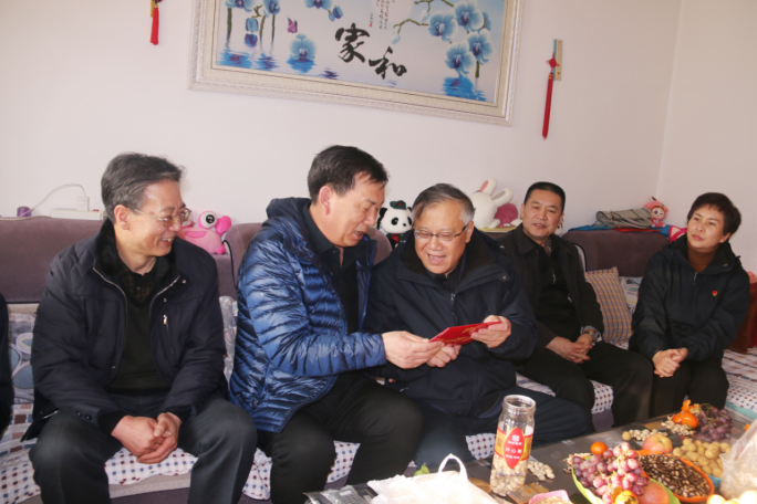 在退休老黨員、老勞模毛敏生和馮芳才家中,王玉輝書記與他們拉起家常,詢問他們的身體狀況和家庭情況,感謝他們?yōu)榍嗪N锂a發(fā)展所做出的努力和貢獻,并代表集團黨委送上組織的關懷和美好新春祝福。