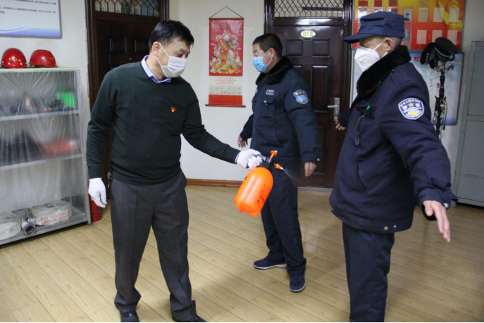 守護(hù)職工筑牢"安全防線":物產(chǎn)配送公司黨委通過配發(fā)酒精40公斤、84消毒液6瓶、消毒濕巾等防控器具,及時(shí)組織黨員指導(dǎo)職工進(jìn)行防控工作,重點(diǎn)對(duì)宿舍、辦公室、值班室、洗手間門把手、辦公桌椅等進(jìn)行噴灑消毒。