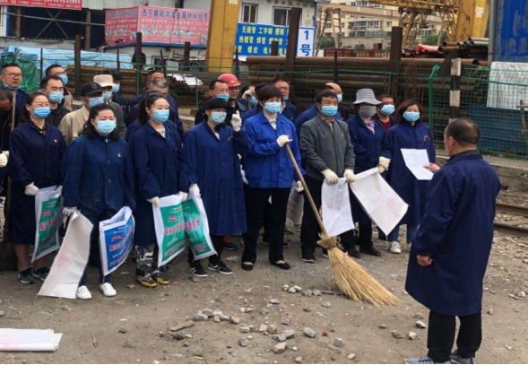 在三名黨支部書(shū)記的帶領(lǐng)下,黨員們分工明確、有條不紊,延鐵路專用線由南向北對(duì)積存垃圾、建筑垃圾、雜草進(jìn)行清除?;顒?dòng)中,黨員們充分發(fā)揚(yáng)不怕臟、不怕累的精神,有的掃地、有的撿拾垃圾、有的拔除雜草,呈現(xiàn)出一片熱火朝天的勞動(dòng)景象。經(jīng)過(guò)一個(gè)多小時(shí)的勞動(dòng),鐵路專用線兩側(cè)垃圾得到徹底地清除。