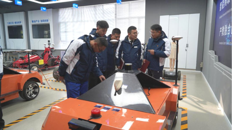在參觀汽車專業(yè)實(shí)訓(xùn)中心時(shí),交通運(yùn)輸學(xué)院汽車系智慧互聯(lián)專業(yè)老師為支部黨員進(jìn)行了精彩的現(xiàn)場(chǎng)授課。大家積極請(qǐng)教,互動(dòng)交流,了解了智慧互聯(lián)交流與共享的新型模式,對(duì)生活和工作帶來便利和智能化體驗(yàn)等內(nèi)容。在場(chǎng)認(rèn)真聆聽的“物產(chǎn)工匠”石學(xué)林對(duì)近期將與高校老師組隊(duì)參加“西部陸海新通道建設(shè)全國引領(lǐng)性勞動(dòng)和技能競(jìng)賽”,有了新的啟發(fā)。下一步,校企雙方將會(huì)對(duì)“優(yōu)服務(wù)、壯產(chǎn)業(yè)”技能競(jìng)賽項(xiàng)目進(jìn)行深入的研究和探討,做到交流“不斷線”,學(xué)習(xí)“不停步”。