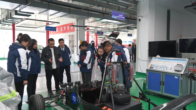 在參觀比亞迪E5純電動(dòng)車實(shí)訓(xùn)區(qū)時(shí),大家看到了學(xué)院2023年全國行業(yè)職業(yè)技能大賽二等獎(jiǎng)作品的技術(shù)“含金量”,饒有興趣地了解了繪圖-備材-制作-成型的具體過程,以及對(duì)轉(zhuǎn)動(dòng)、逃生、行駛、焊接、拆裝、車架與車身的測(cè)試。高校的科研成果凝聚了工匠精神傳承和“惟專惟精、匠人匠心”的人才培養(yǎng)理念,在提升職業(yè)道德修養(yǎng)、增強(qiáng)專業(yè)技術(shù)能力、發(fā)展創(chuàng)新創(chuàng)業(yè)能力等方面全面融入了工匠精神培育。在場(chǎng)的黨員仔細(xì)觀摩,向創(chuàng)作單位投以敬佩的眼光。雙方在“工匠精神是培養(yǎng)高素質(zhì)技術(shù)技能人才的目標(biāo)導(dǎo)向,是推動(dòng)產(chǎn)教融合、校企合作的重要實(shí)踐途徑”達(dá)成共識(shí)。