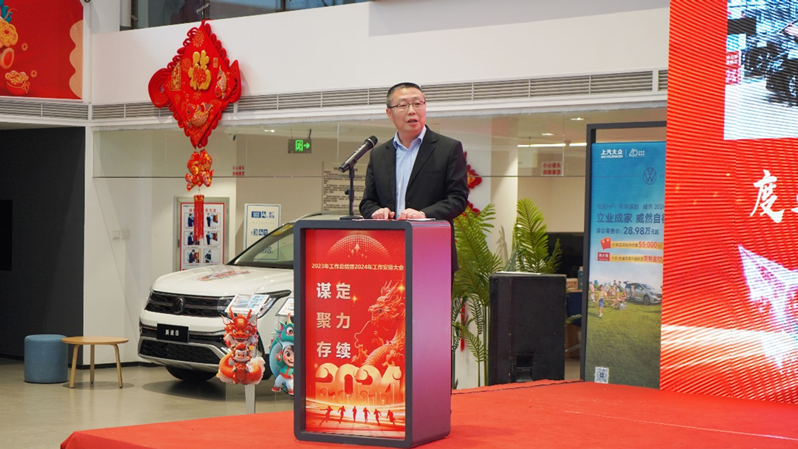 2024年是新中國成立75周年,是向奮斗目標發(fā)力攻堅之年,是實現(xiàn)“十四五”規(guī)劃目標任務的關鍵一年。為了激勵班子講政治、履好責、守規(guī)矩、務實功、抓落實,公司提出了2024年的工作主線,重新梳理思路,完善鏈條,明確抓手,確定目標。為了激發(fā)全員,丁勇帶領與會人員再次重溫李強總理答記者問“走遍千山萬水、說盡千言萬語、想盡千方百計、吃盡千辛萬苦”中蘊含的深刻涵意,飽含深情地把“活著,就是偉大勝利”的道理講深講透,并引用飛機廣播安全提示語,以形象、新穎的方式,勉勵全體汽貿(mào)干部職工堅信“度過顛簸、安全降落、準時起飛。”只要上下齊心,精誠共進,目標就一定能夠?qū)崿F(xiàn)。