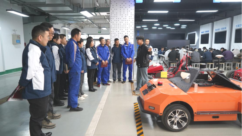 在參觀汽車專業(yè)實(shí)訓(xùn)中心時(shí),交通運(yùn)輸學(xué)院汽車系智慧互聯(lián)專業(yè)老師為支部黨員進(jìn)行了精彩的現(xiàn)場(chǎng)授課。大家積極請(qǐng)教,互動(dòng)交流,了解了智慧互聯(lián)交流與共享的新型模式,對(duì)生活和工作帶來便利和智能化體驗(yàn)等內(nèi)容。在場(chǎng)認(rèn)真聆聽的“物產(chǎn)工匠”石學(xué)林對(duì)近期將與高校老師組隊(duì)參加“西部陸海新通道建設(shè)全國引領(lǐng)性勞動(dòng)和技能競(jìng)賽”,有了新的啟發(fā)。下一步,校企雙方將會(huì)對(duì)“優(yōu)服務(wù)、壯產(chǎn)業(yè)”技能競(jìng)賽項(xiàng)目進(jìn)行深入的研究和探討,做到交流“不斷線”,學(xué)習(xí)“不停步”。