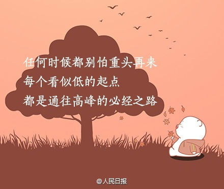 任何時(shí)候都別怕重來,每個(gè)看似低的起點(diǎn),都是通往高峰的必經(jīng)之路。你不努力,誰又能替你成長(zhǎng)?來源:新浪微博@人民日?qǐng)?bào)